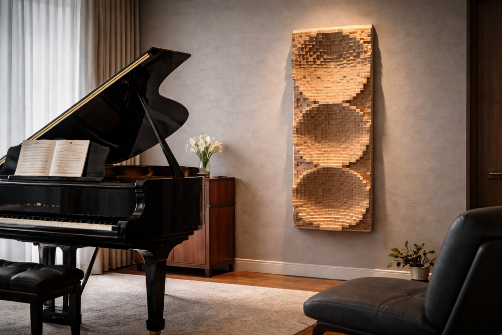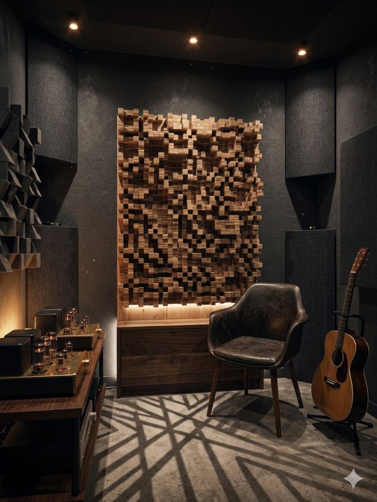 楽器の物理特性に合わせた、周波数別の吸音・拡散チューニング。