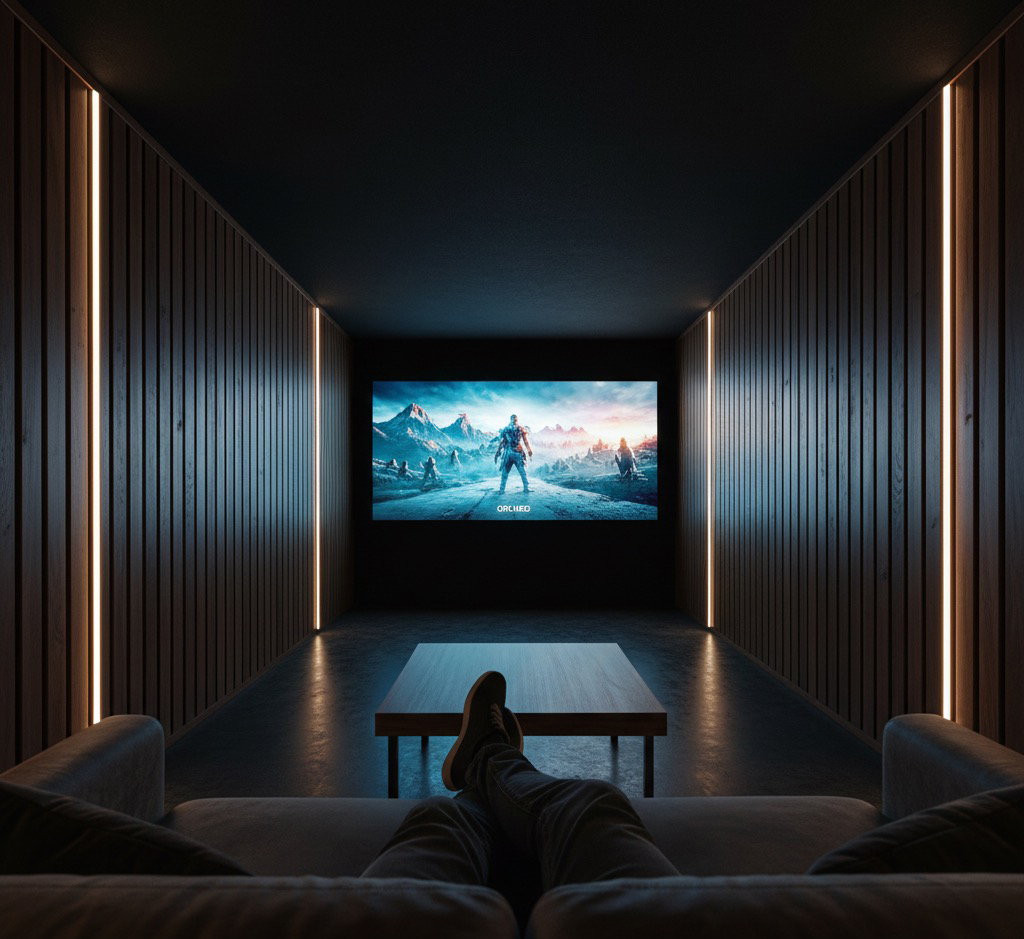 だからこそ、シアタールームの壁は、光を吸い込む「黒(ダークトーン)」でなければなりません。