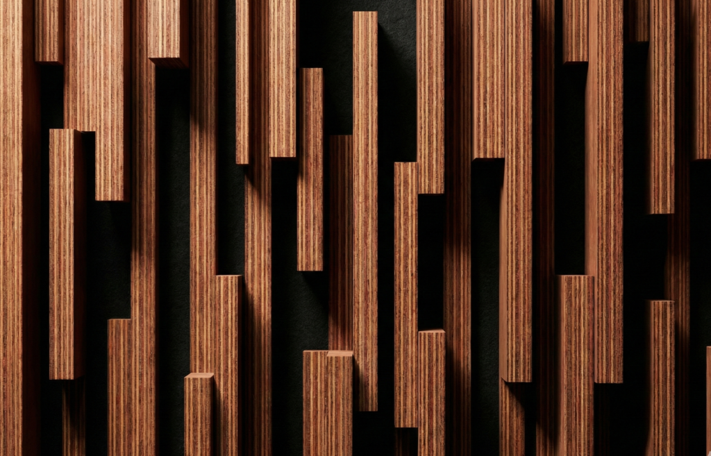 トラックの荷台や橋梁に使われる、極めて高密度・高剛性な南洋材。その赤褐色の木肌と圧倒的な質量は、中低音を力強く跳ね返し、音に芯を与えます。