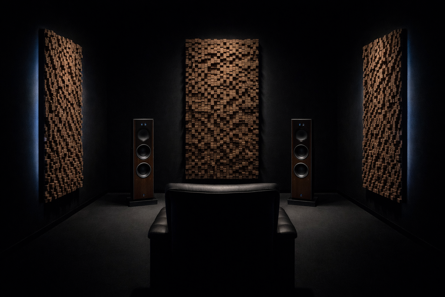 配置、低域、初期反射、時間構造を含めて空間を整理しています。